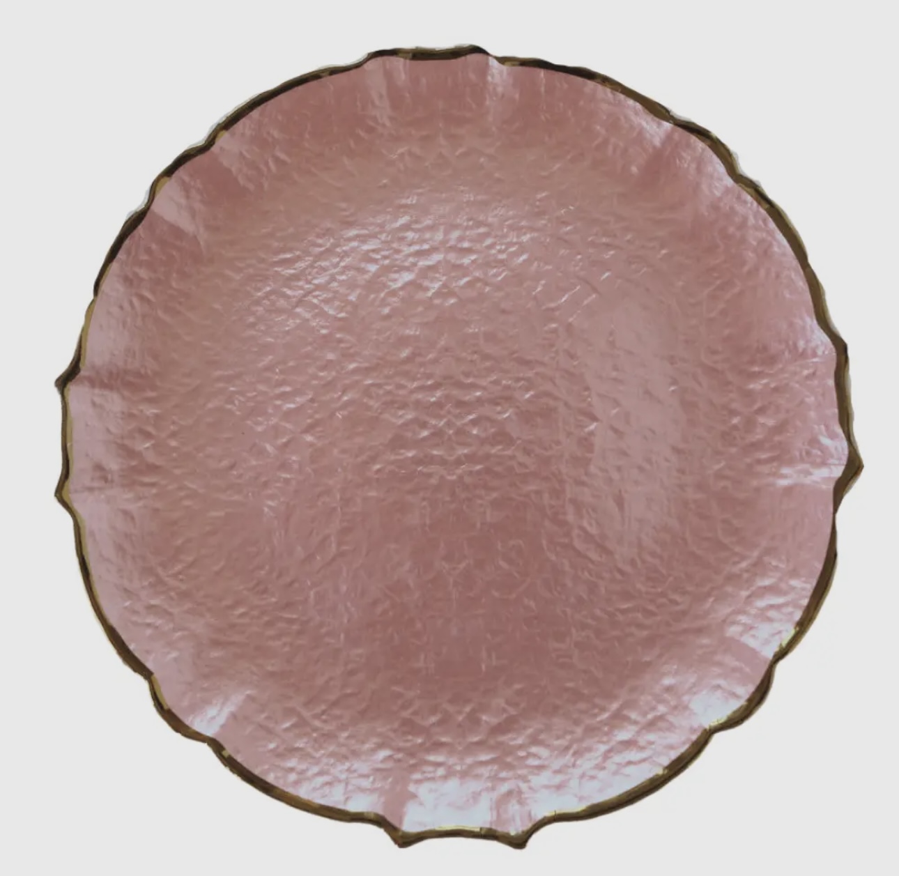 Description: Pink scalloped charger with gold rim